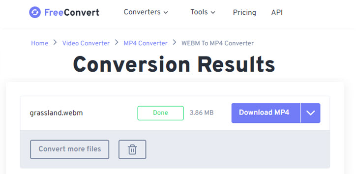 FreeConvert supports up to 1GB file size. You can upload WebM video from local drive, Google Drive, DropBox, or directly convert WebM from URL to MP4.