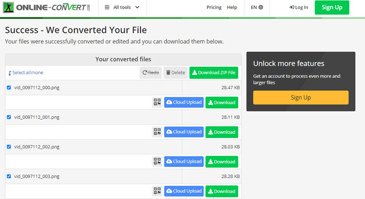 Step 5. Unzip the file, and you'll get a series of PNG images from your WebM video.