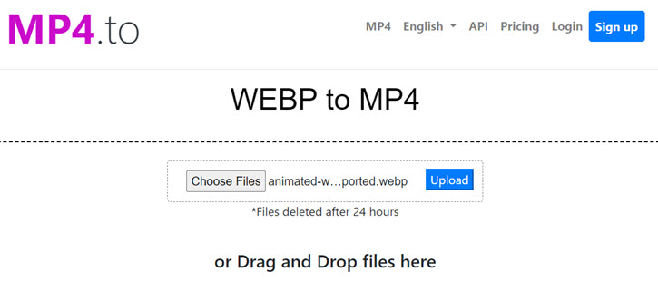 mp4.to is another online converter that truly support WebP to MP4 conversion online. You can upload animated WebP and download it as MP4 to playback without error.