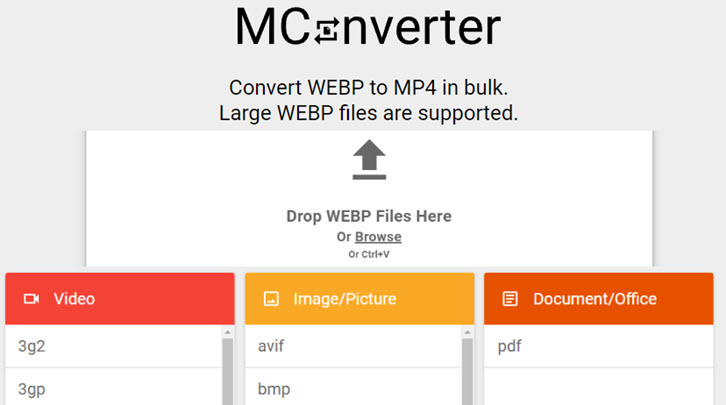 MConverter allows for 200MB WebP files per time to convert to MP4. You can add animated WebP or still images. Once the WebP file is uploaded, make sure to select MP4 as the output format.