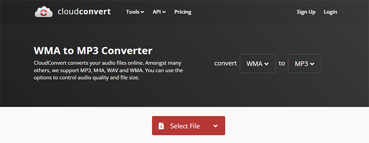 Online tools are ideal for occasional users. There is no need to download or install any software. Most of them have simple interfaces and are thus easy to use. Basically, all you need to do is upload, convert, and then download, as long as you don't mind uploading your music to a cloud service. Below are the steps to convert WMA to MP3 with the online audio converter, CloudConvert.