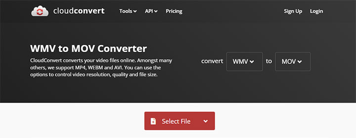 CloudConvert is one of the best WMV to MOV converters with a relatively large file size limit of 1GB. It has an immaculate interface without annoying ads. Besides WMV and MOV, you can also convert archives, documents, eBooks, and other file formats.