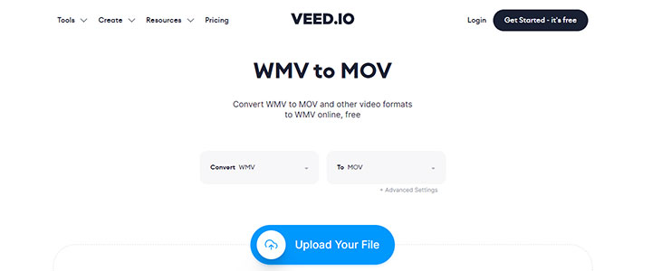 - Open https://www.veed.io/convert/wmv-to-mov.