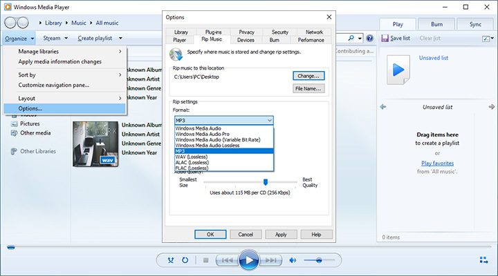 Convert WMV to MP3 with Windows Media Player