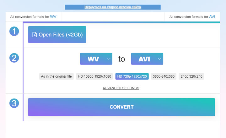 Method 2. Convert WV to AVI Online