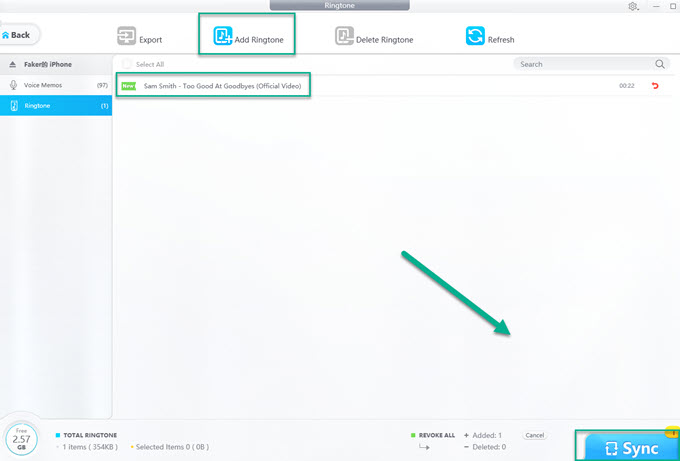 Step 3. Click Sync in the bottom-right corner to transfer ringtone(s) to your iPhone.