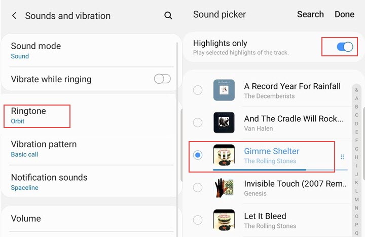 Tips: Switch on "Highlight Only" to play selected highlights of the track. Otherwise, the song will be played from the very beginning when a call comes in.