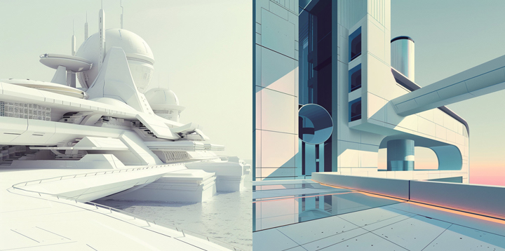 Prompt #20. Generate minimalist representations of futuristic architecture, focusing on clean lines and futuristic elements