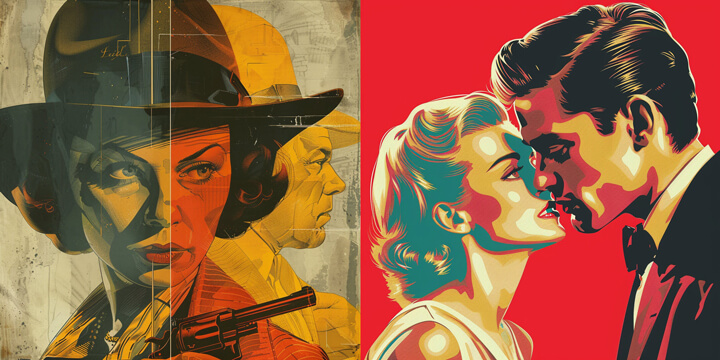 Prompt #27. Reimagine classic movie posters from the golden age of cinema, using bold colors, dramatic compositions, and iconic imagery