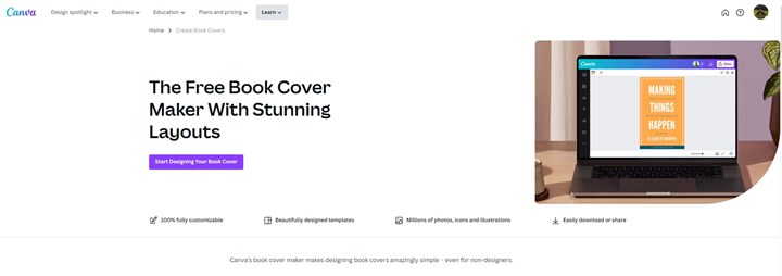 When it comes to find a designing platform, Canva will always be one of the most popular options. As a professional graphic designer, Canva is also an AI book cover generator that offers a large number of beautifully designed templates. Canva also provides access to over 1 million stock images, graphics, and illustrations. Many of these photographs are free, and the premium images are also reasonably priced.