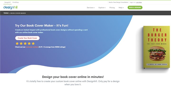 Designhill is another impressive AI book cover generator, offering unique features and advanced AI algorithms to provide professional design suggestions. It enables users to get several design suggestions based on their preferences, which makes it simpler to create captivating book covers
