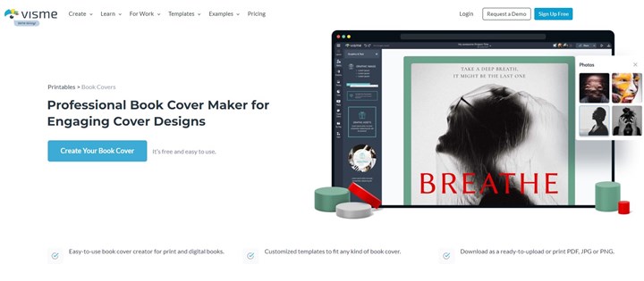 Visme is a robust AI book cover generator that offers a wide range of features and templates to choose from. You can customize these booke cover templates and make them fit for your needs. With AI-powered design suggestions, Visme book cover generator helps users create attractive book covers effortlessly.