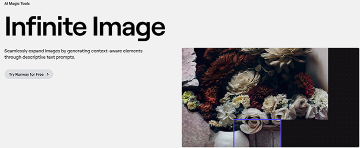 RunwayML is known as an avant-garde platform that integrates AI into creative processes. It introduces Infinite Image to allow artists, designers, and creators to use AI to expand image backgrounds. How to expand an image with AI in Infinite Image is similar to DALL-E. After choosing the original image, you need to move the generation frame to expand the image, then enter a descriptive text prompt of what you'd like to see. AI picture expanders like this give you great freedom, but your prompt matters a lot to the output results.
