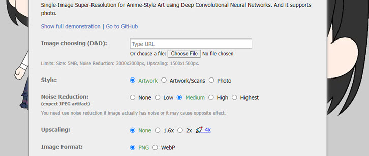 It performs better on 2D illustrations and anime than on real-life photos, primarily due to the image-enhancing models it utilizes. When sharpening and enhancing pictures, you also have the option to remove noise, with four levels to choose from.