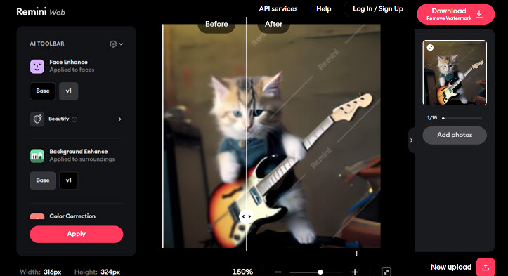 Remini has earned a reputation as both an AI profile generator and an AI image sharpener and enhancer. Concerning enhancement, its primary focus is on refining details in portraits and selfies. It utilizes AI algorithms to sharpen facial features and enhance overall image quality. Remini is versatile and can be used with various types of photos, including old family pictures, scenic shots, and pet images.