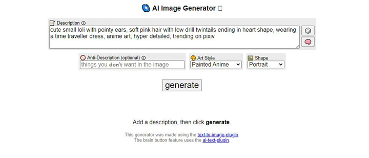 Select an AI loli generator, enter the prompts that describe the specific details of your desired loli character, and click on Generate to create the Loli arts.