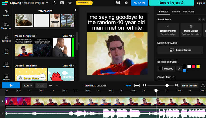Kapwing meme maker is a popular online tool for creating memes. It offers a user-friendly interface with various customizable templates, text, and editing options to make creating memes simple and fun. With Kapwing, you can also easily add your own personal touch to memes and share them across social media platforms. In addition to still images, Kapwing also lets you make video memes.