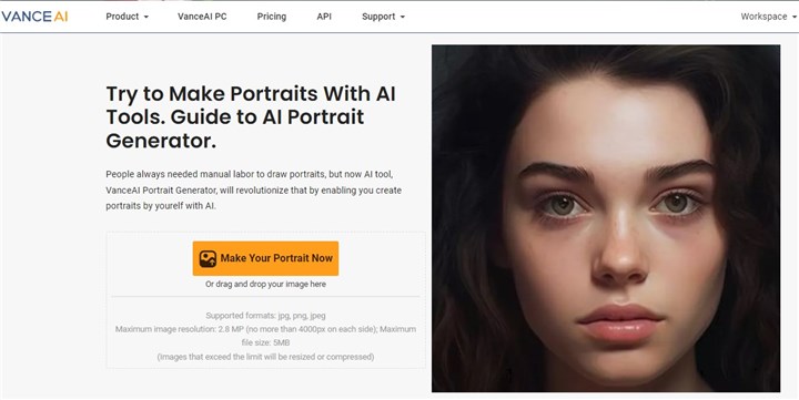 1. Go to VanceAI's AI Portrait Generator and click Make your Portrait Now to upload your photo.