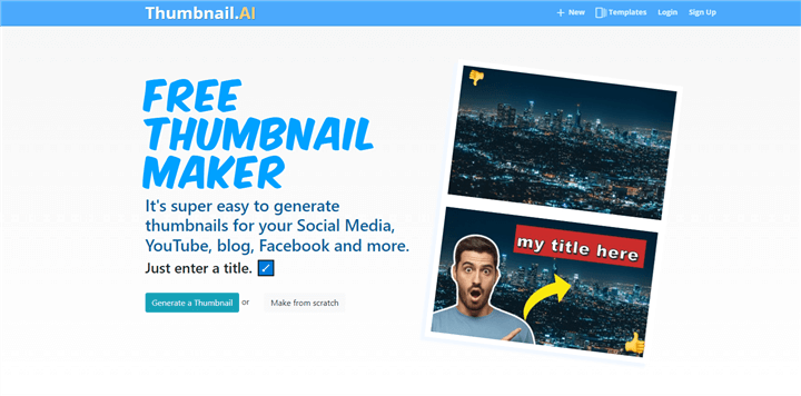 Thumbnail.ai claims itself to be a free online tool that uses artificial intelligence and able to generate attractive, relevant, and optimized for clicks thumbnails for YouTube videos