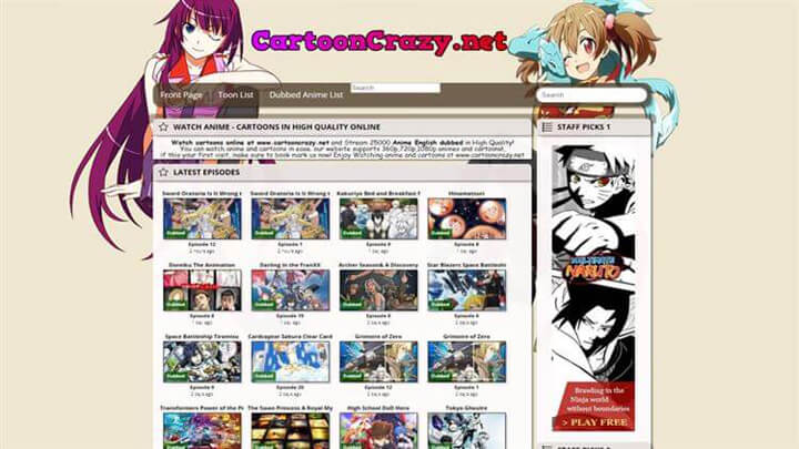 - 15. CartoonCrazy: Best anime and cartoon website to watch anime and cartoon online.