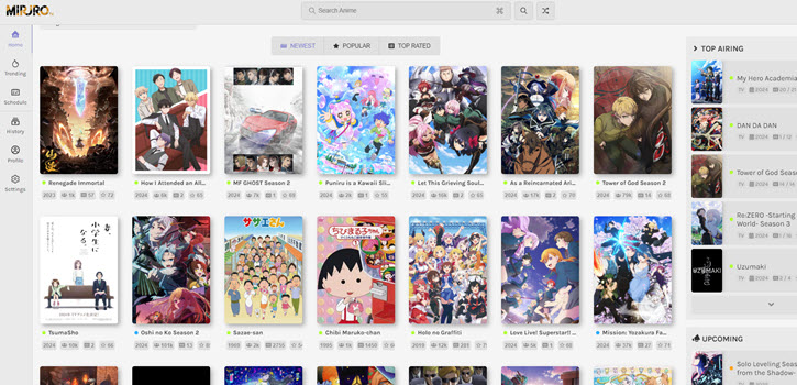 Miruro is an excellent AnimeSuge alternative for anime enthusiasts seeking a feature-rich platform. One of its defining features is the Trending Section, which ranks the most popular titles, complete with statistics like the number of bookmarks. The platform offers a highly organized Watch History feature, allowing users to filter by title, time, or name, ensuring seamless navigation.