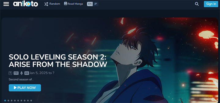 One of the main highlights of Anikoto is that you can watch anime from multiple sources and in multiple languages. Popular titles, like "Solo Leveling Season 2," can be found here for your enjoyment.