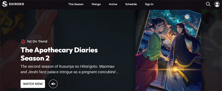 Shiroko is an anime streaming platform that provides links to various anime media without hosting the files on its servers. This ensures a streamlined viewing experience. You can find a wide selection of anime content from different genres, multiple sources and languages. The site connects users to media hosted on third-party services, giving access to diverse options for your favorite shows.
