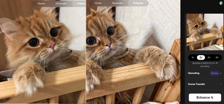 The creative upscaling feature is free to use and works nicely for many types of photos.