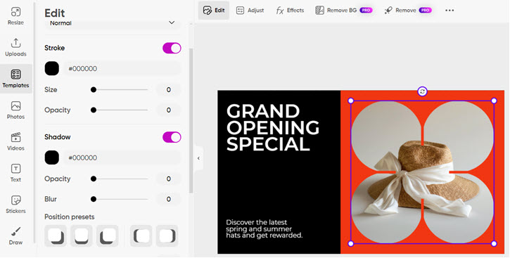 Canva's image editing tools may not match those of dedicated photo editing software.