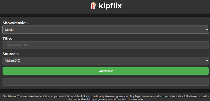 Kipflix works well alongside other streaming platforms that offer video directories and databases. Since it doesn't host its own media library, you'll need to browse other directory sites to find the TV shows or movies you want, and then search for them within Kipflix. In this way, Kipflix serves as a good backup plan when looking for sites like Bflix.