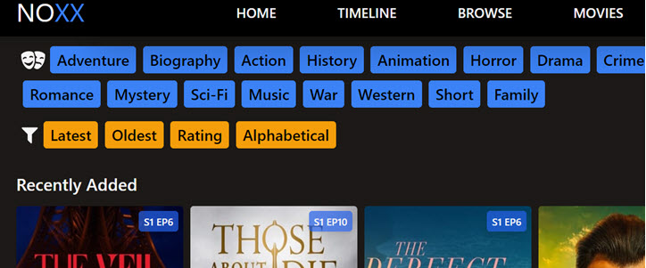 Noxx is another popular alternative to Bflix streaming. The website enlists a wide range of TV shows and movies, including adventure, action, history, animation, drama, comedy, thriller, fantasy, Sci-Fi, short, and many more. It allows you to browse the content based on timeline and category. You can also use the search feature to quickly navigate the website.
