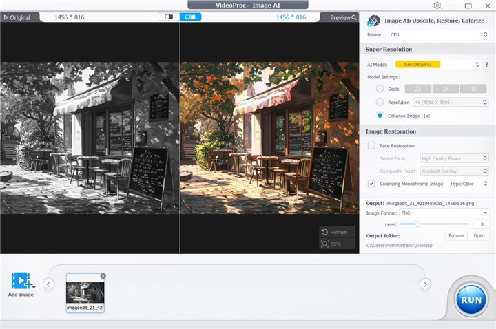 For photographers who want to upscale and enhance black and white architectural images, VideoProc Converter AI is a game-changer. Its Image AI feature is designed to offer cutting-edge features tailored to enhance black-and-white architectural photos. From AI-powered noise reduction that smooths out imperfections in low-light images to intelligent contrast adjustments that highlight the interplay of light and shadow, VideoProc Converter AI empowers photographers to transform ordinary shots into striking works of art.