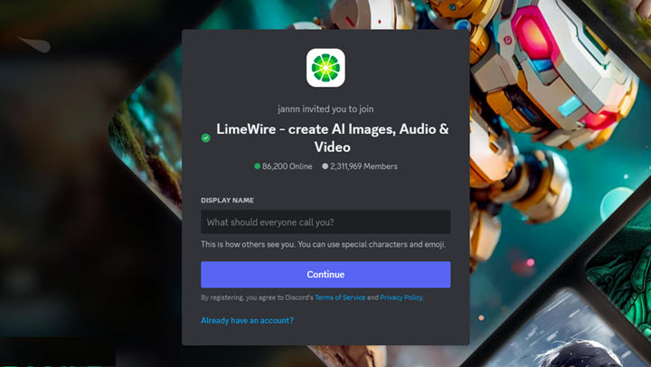 Step 1. Join the server of LimeWire on Discord. Wait for at least 10 minutes, and then you are allowed to use its chatbot.
