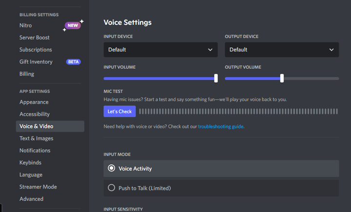 If there is no sound from Discord but your computer can play the audio from other applications, you can check the Voice Settings on Discord and ensure the right input and output devices are selected and are not muted.