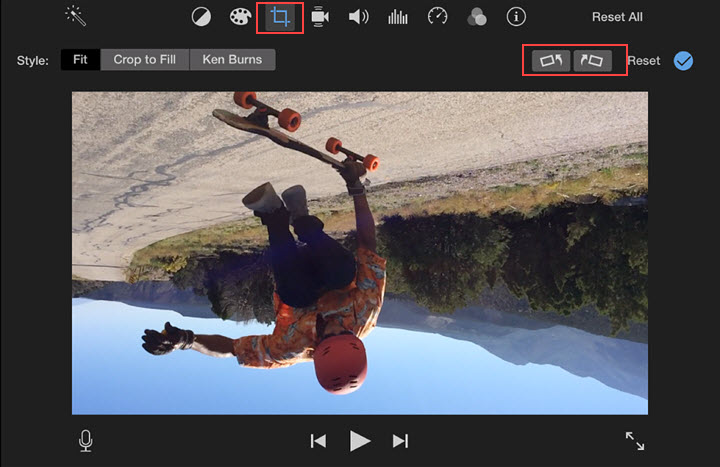 Step 2. Then find the crop icon which is at the top of the preview window. Next, click the rotate icon to make the video image right.