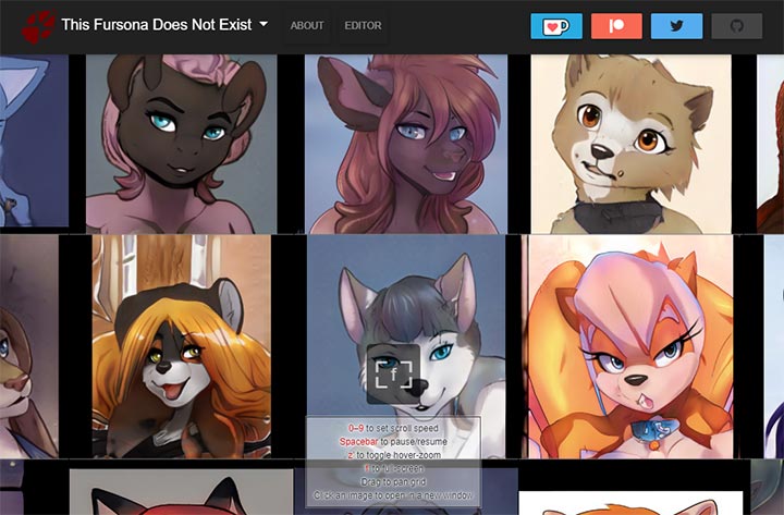 This Fursona Does Not Exist is different from the furry AI image generators all above. Instead of making fursonas based on your description, it shows you endless furry images once you enter its website and scroll down the page. When you find the one you like, double-click on it, and then you can see it in its original quality and save it to your computer. This app utilizes a custom YOLOv3 framework to analyze faces against a database of over 55k SFW images from e621.net. Thus, all of the images are furry portraits and mainly taken as AI avatars among the furry fandom.