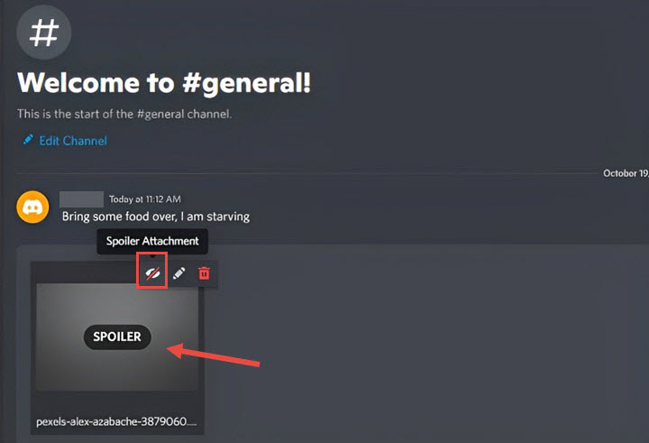Step 4. After loading the file to Discord, click on the eye icon to mark it as Spoiler. And the image will be concealed beneath a spoiler tag. Users who wish to view the image could tap to reveal it.