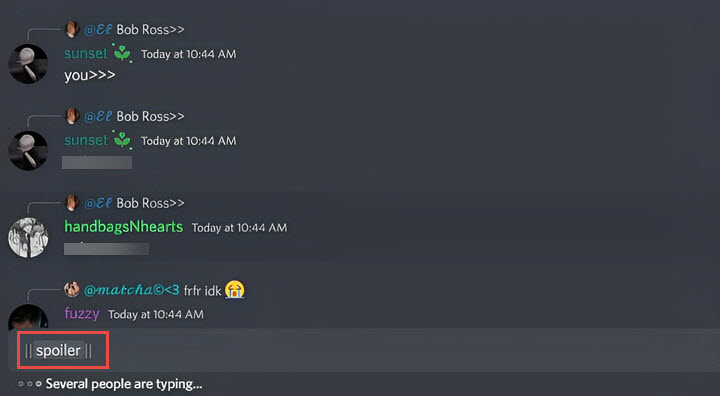If what you are going to reveal in your discourse includes information that others might not be ready to see, you can use the spoiler tags on Discord to mark a part or entire text message as a spoiler in two ways: