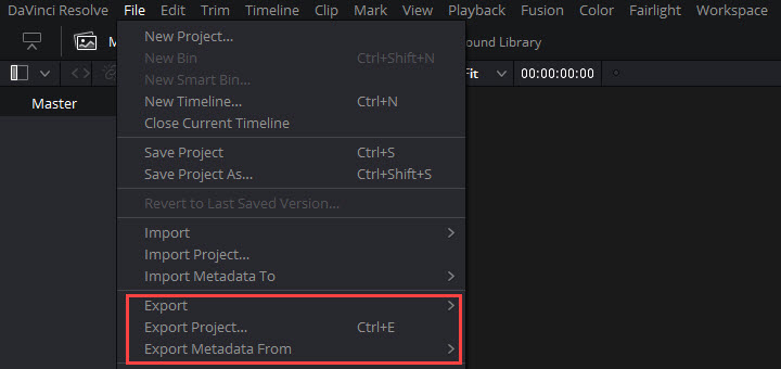 DaVinci Resolve, like most video editing software in the market, puts export options under "File" in the top menu. However, you will get files with strange file extensions after exporting with this option. That's because this option was designed for collaboration in post-production. Here you can get three types of files from DaVinci Resolve.
