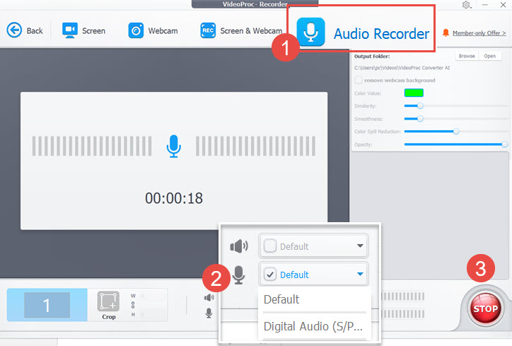 Follow the steps to record audio in VideoProc easily: