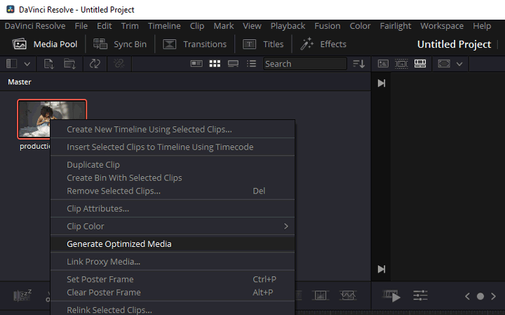 DaVinci Resolve can automatically convert source media files to optimized media with editing-friendly resolution and format. It can switch between the original media files and the optimized ones when needed to improve the overall editing performance. Creating optimized media won't change the final quality of the export as DaVinci Resolve uses the original media files for the final render. Here's how to create optimized media to make DaVinci Resolve run faster: