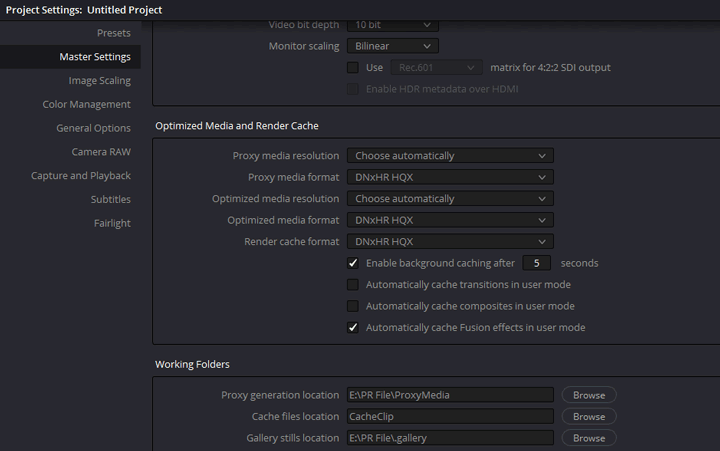 - Scroll down under the Master Settings section to find Optimize Media and Render Cache.