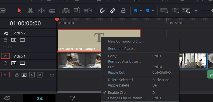 The Render Cache mode is helpful to make the smooth playback for the entire timeline. However, sometimes we might have only one or some clips that cannot play smoothly due to the application of color grading or other effects. In this case, render in place can make our life easier. Enabling the Render in Place feature will make DaVinci Resolve render the selected effects-heavy clips and apply all the effects to the chosen clips. After that, it replaces the original clip with the rendered version for achieving smooth playback. Here's how to enable render in place to make DaVinci Resolve run faster: