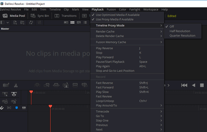 - Choose Timeline Proxy Mode and select Half Resolution or Quarter Resolution.