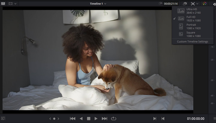- Select the target timeline resolution under the Timeline Resolution panel.