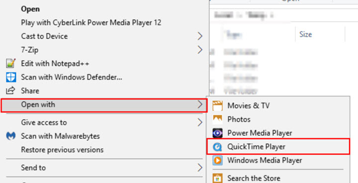 Step 2. Right-click on the MOV video. Click Open with and click Windows Media Player.