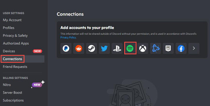 Another alternative to playing music on discord without a bot is to link your Discord account to Spotify.