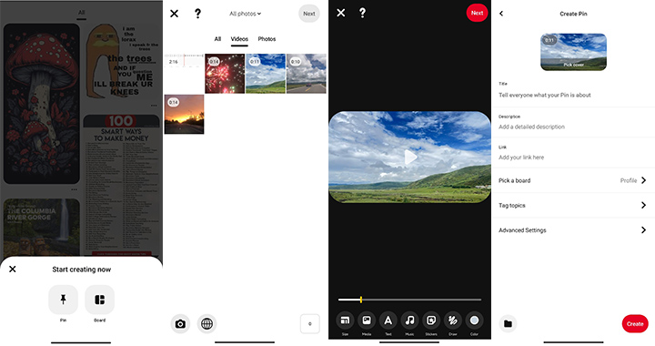 Idea Pins allow you to record or upload video clips, images, and other forms of content. Here's how to upload videos on Pinterest without business account.