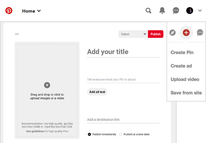 Once you have set up your business account, posting a video is just as simple as posting a picture. To post video pins on Pinterest, follow the steps below.