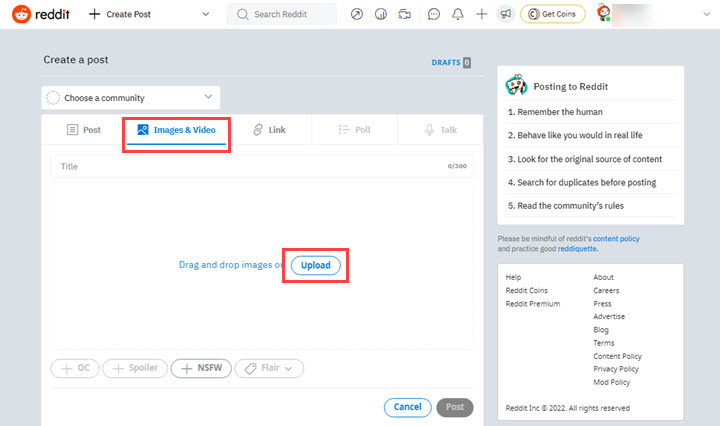 Reddit also hosts videos from YouTube via links and embeds the YouTube player on your post after it's published. In this way, you can share videos with others without downloading them in advance, meanwhile, you don't need to wait for a long time to upload and process the video. Here's how.
